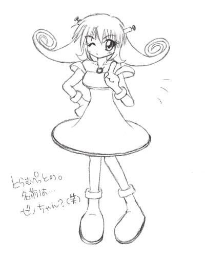 ★目覚めたら真っ暗だった。 や、暗いの苦手だから電気つけて寝たんだ。それにしても暗い。 いつもはギラギラお日様の光でいっぱいなのに。…窓が東側だからね。 雨戸が閉まってるってだけなのに。お日様がいかにありがたいモノなのかと実感したよ。 いつも「暑〜〜太陽ジャマー」とか言ってたけど、実際に太陽が無くなったらもう地球はお終いだね。 ・・・ はは、いや、怖い夢を見ました。起きたいのに起きれないの。それの繰り返し。 ケータイ見て「暗いけど朝なのか、起きなきゃ」とは思ってるんだけど、夢が邪魔して起きれないん。 目が覚めて起き上がろうとすると、弱い金縛り状態。ベットの縁につかまって何とか起きる。 すると暗い世界があって、のこぎり持った人とかがたくさん居るの。 「げ、なんで?」と思いつつもベットから降りる。すると、目が覚めて起き上がろうとしてる… …こんなんの繰り返し。暗い世界での内容がちょっとずつ変わるだけ。 何回繰り返したかな…。起きれた時はホっとしたよ。・・・雨戸が閉まってるだけなのに。 ★真似っこ精霊。 某所のマネッコをして、トランペットの精霊なんか描いたけどねー… れんしう板だとつい曲線ツールに頼っちゃうし、考えず勢いで描いちゃったからなぁ。 ってことで!ラフで描き直してみた♪コレ→★ ぴょこ的にはちょっち等身が伸びてるけど、まぁたぶんコルネのお姉さんだし、いっか(笑) コルネはそのうち描くさー。ってか、考えるの楽しい〜〜〜♪♪ うお、「いいとも」でトランペットのお話してるぞー(笑) ★昨日録画した結晶塔の帝王をも1度見る。 うがぁ、やっぱリザードン登場に泣ける〜〜〜(T T) その他お気に入りシーンは・・・ サトシの「このままじゃミーは ずっと一人ぼっちなんだ!!」って言葉。あぁサトシ。 あとは幼いサトシの写真とか、平泳ぎするニャース(笑) 他にもいっぱいあるけどさ、書ききれんよ。 ミーは元が5歳で、次に18歳、んで10歳になるよね。私的に18歳のは好きじゃない。 ってか、アンノーンがキモい(爆) うん、でもすっごくいいなぁ。結晶化される時も、溶けるときも、すごく綺麗。 ・・・うぅ、サトシみたいな弟が欲しいー(謎〆) |