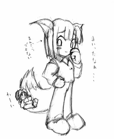 ▼トップに書いたとーり、やっとリク絵アップ。 そおか、一応描けたのは約1ヶ月前なのか・・・延ばしすぎだ。 何だろねー。ダメだねー。どーしてこう、とろとろのろのろうにょうにょへみょへみょ・・・・ しかも4444の絵よ!?うああ、今19816っすヨ!(細 …あ、もーすぐ2万じゃんか…。まぁココは回るの遅いから「もーすぐ」でもないか。 イヤしかし、未だ5000のすら手ぇつけてないってのはヤバいわ! ど〜〜〜〜しても時間とれないよーなら、仕事場に資料持って行くしか。 休憩時間に案考え、ノートにカサカサ描くんよ。最近よくやってます。(うわ まだオバハン達には覗かれてないから平気さ♪ や、思いっきり隠して描いてるんだけど(怪 ヒカル描いてると顔がニヤけてきてピンチだ。 アキラ描いてると自制心を保てなくって、これまたピンチ。 …仕事場で何やってんだかねぇ…(休憩中とはいえ ん、微妙に話ズレたね。 5000はぐるクリってヤツかぁ。 よっしゃ、ガンバルぞ! でもまだちょいと・・・わーん。絵以外にもやるコトいっぱいなんだー(泣 ▼あ、で、アキラ狐。 ふははははは。リクくれた人(ってか ばんなんくん)からステキな絵をゲットだぜ! …や、ムリヤリかっぱらってきたって感じだね(ぐは コレコレ♪→■ あああああ〜〜〜・・・かわええっ!!!(≧▽≦) まんざらでもないっすか!そっすか!くはああ〜〜〜アキラ嬉しそーだあ〜〜〜♪♪ ヒカルもめちゃくちゃ楽しそーだし!! こりゃあ前言ってた「尻尾を枕に」を何より先にも描きたくなるさ!! あ〜〜〜も、どーしよ!描きたい描きたい描きたい〜〜〜〜っ!!!! ・・・ ・・・ …ハイ、落ち着こうね。>ぴょこ ゴメ、ホームランだ。かなり好きだ、コレ。 尻尾はやっぱ、ふあふあのもこもこなんだろーか…リーヤみたいに。 あ、リーヤは犬か。違、オオカミか。(←赤ずきんチャチャ 懐かしい… さて。次アップ出来る絵は何になるんだろーか。自分でもわからん。 |